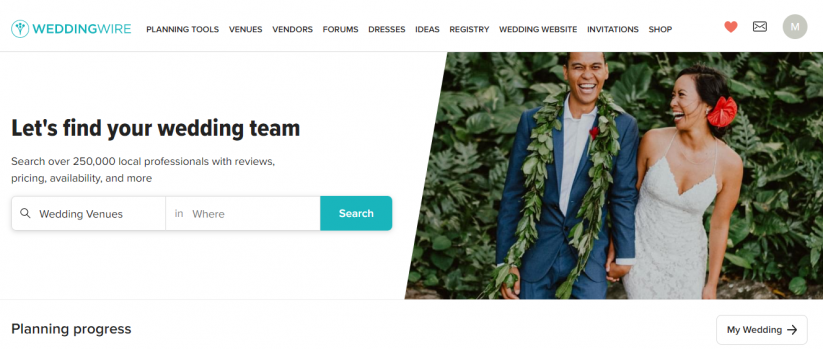 É um site e diretório popular para casamentos. Ele oferece uma suíte online para planejar e organizar um casamento, incluindo um gráfico de assentos e listas de verificação de casamento de acordo com suas necessidades.