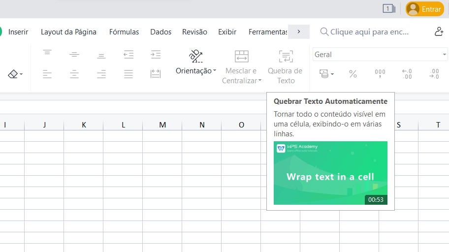 12. Selecione o botão "Quebrar Texto" no Grupo de Alinhamento.