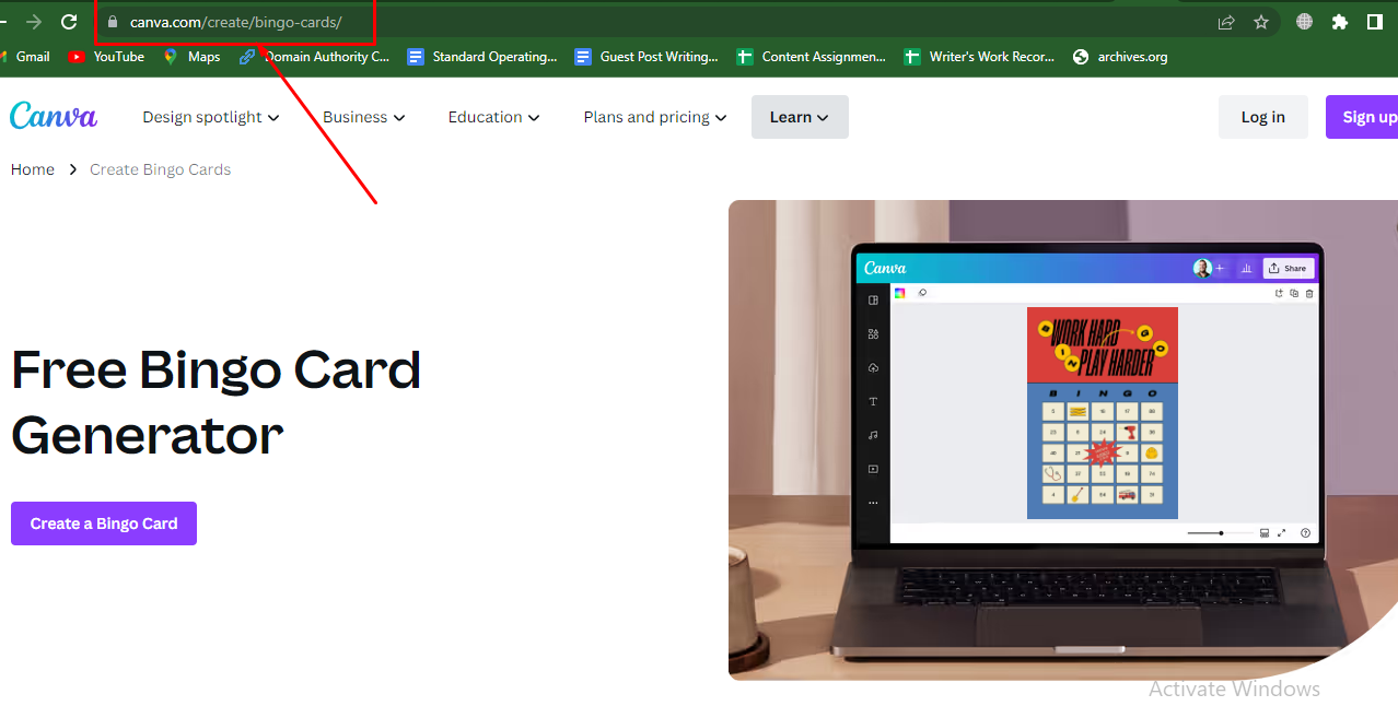 step 1 : O primeiro passo é pesquisar https://www.canva.com/create/bingo-cards/ no buscador do Google.