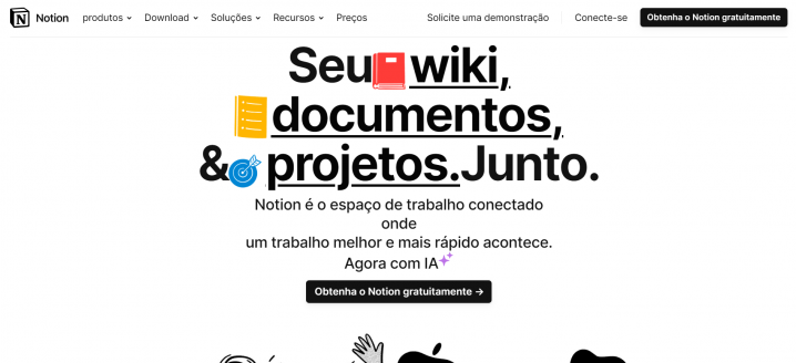 O Notion é um espaço de trabalho completo para indivíduos e proprietários de empresas. Ele oferece a oportunidade de criar documentos, gerenciar projetos e acessar o poder da IA. Você pode personalizar e acompanhar o seu projeto e construir uma boa eficiência no trabalho.