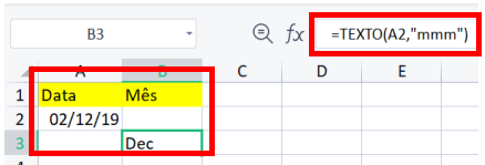 Para facilitar a conversão no Excel, há outra maneira de converter datas em meses. A sintaxe é Texto(Número da Célula, "mmm").