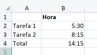 P1. Razões para adicionar tempo no Excel
