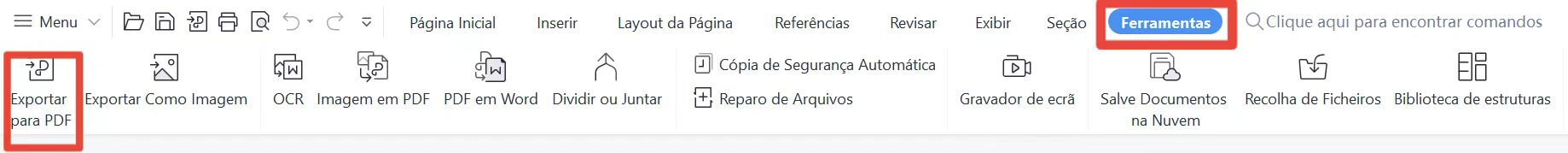 Passo 4: Vá em ferramentas e selecione o botão Exportar para PDF.