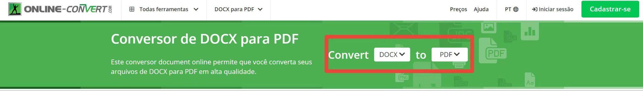 Passo 2: Selecione as opções "Converter de (Word)" e "Converter para (PDF)".