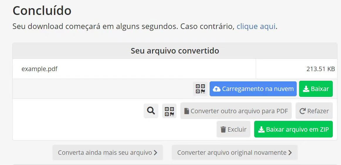 Passo 5: Após a conversão, clique no botão de download para obter o arquivo em PDF.